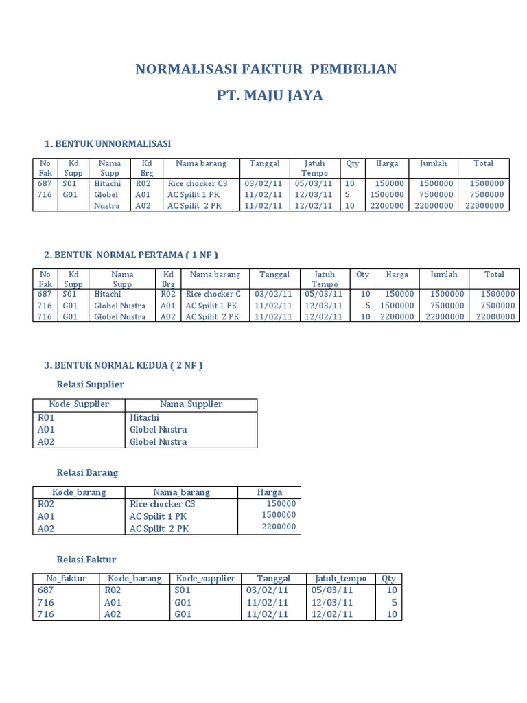 Contoh soal normalisasi dan jawabannya.